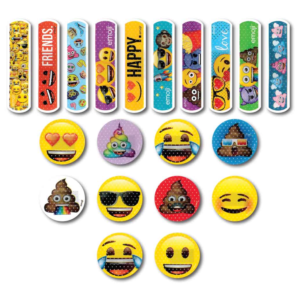 40 Latex Free Emoji bandages per unit.