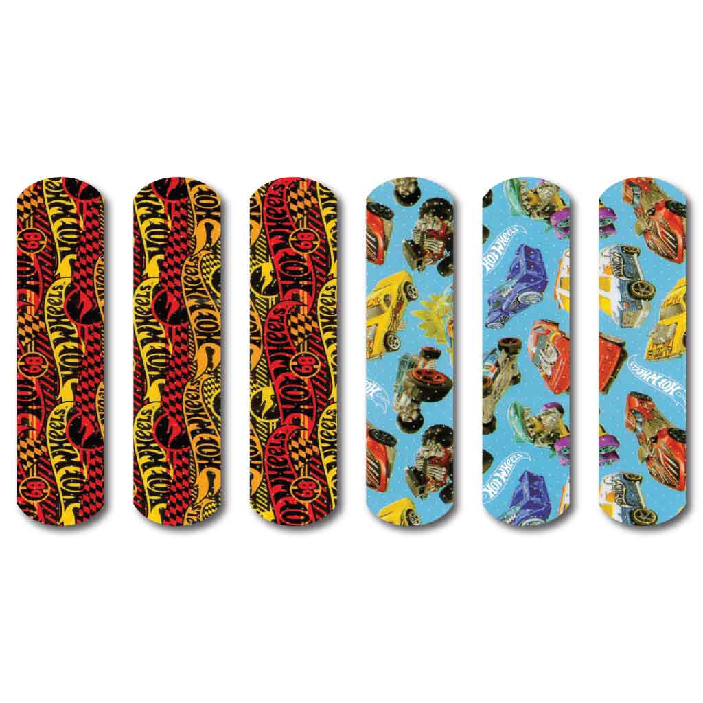 Get your little patients back in the race to a speedy recovery with brightly illustrated Hot Wheels logo and car bandages! Stock up on special bandages to help distract and comfort kids after owies, blood draws, shots or immunizations. Stat Strip® wrapper design makes it fast, easy and hygienic to open and apply the bandage strip to skin.