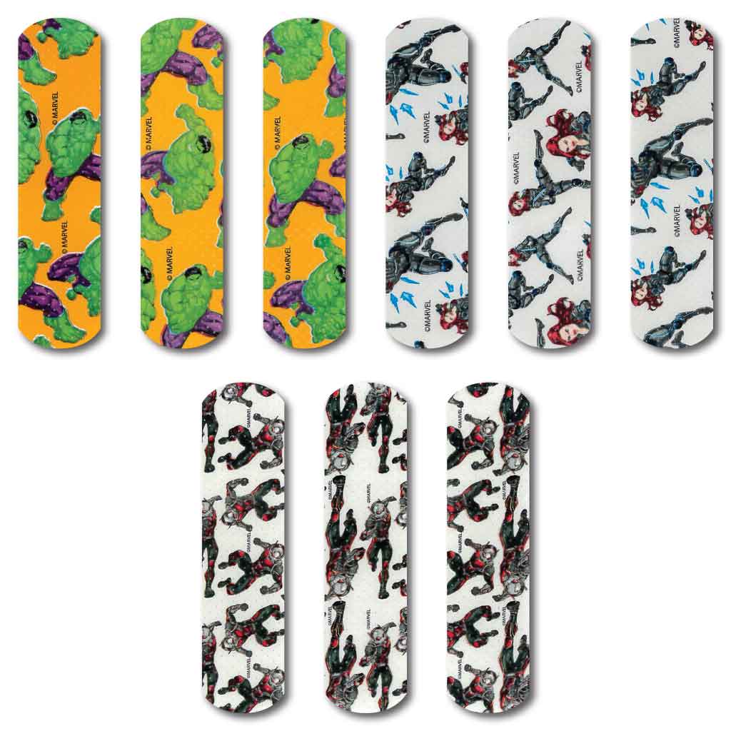 Quickly gain a child's trust with superhero bandages! Hulk and Black Widow will help kids feel strong and brave! Stock up on special bandages to help distract and comfort kids after owies, blood draws, shots or immunizations. Stat Strip® wrapper design makes it fast, easy and hygienic to open and apply the bandage strip to skin.