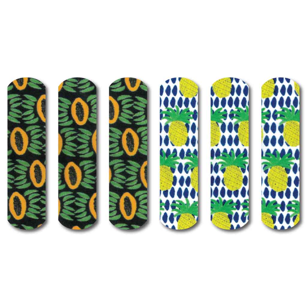 60 Latex Free Pineapples & Papayas bandages per unit.