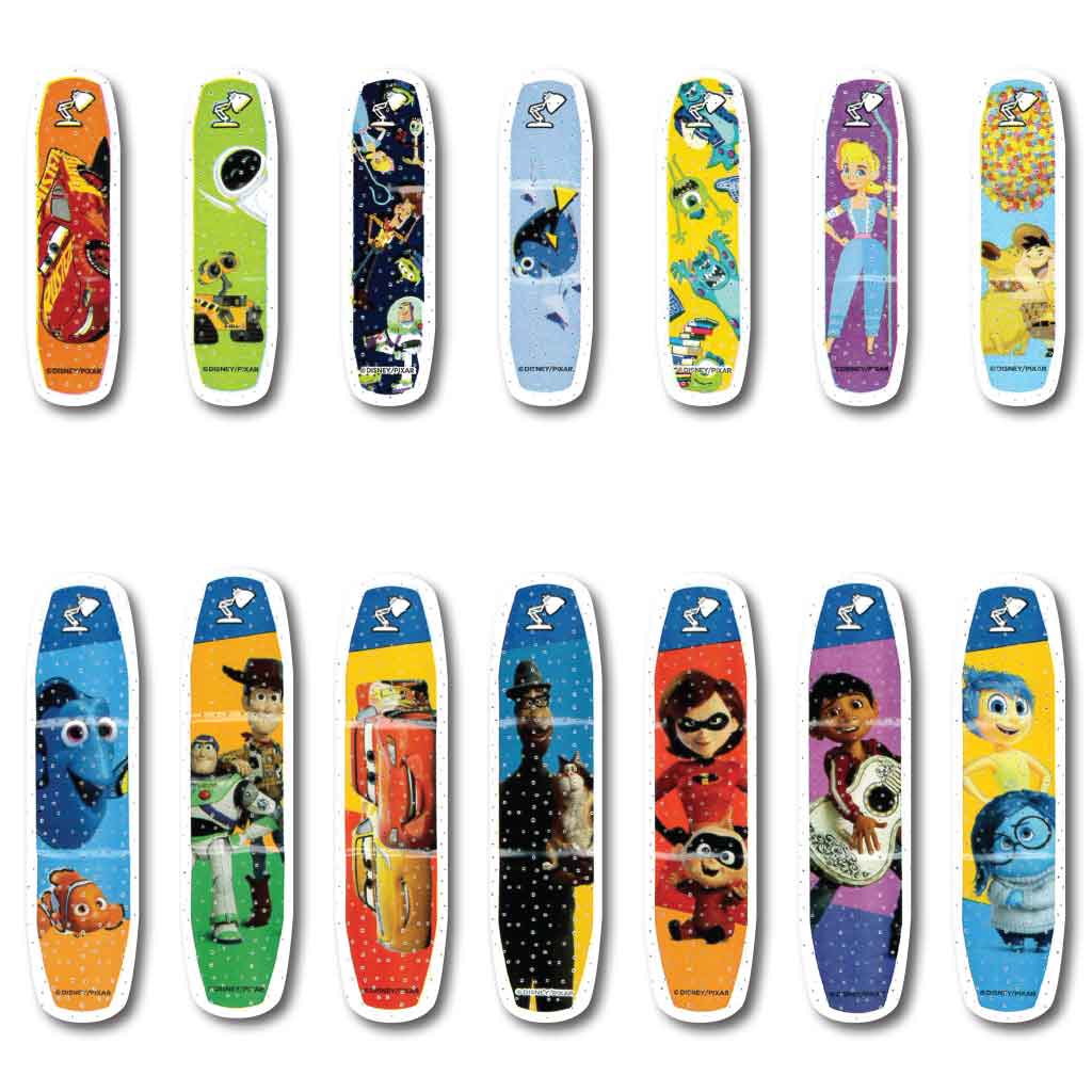 Familiar Pixar mashup characters will help ease their fears! Make first aid more fun with the promise of a bandage featuring favorites from Finding Nemo, Toy Story, The Incredibles and more!