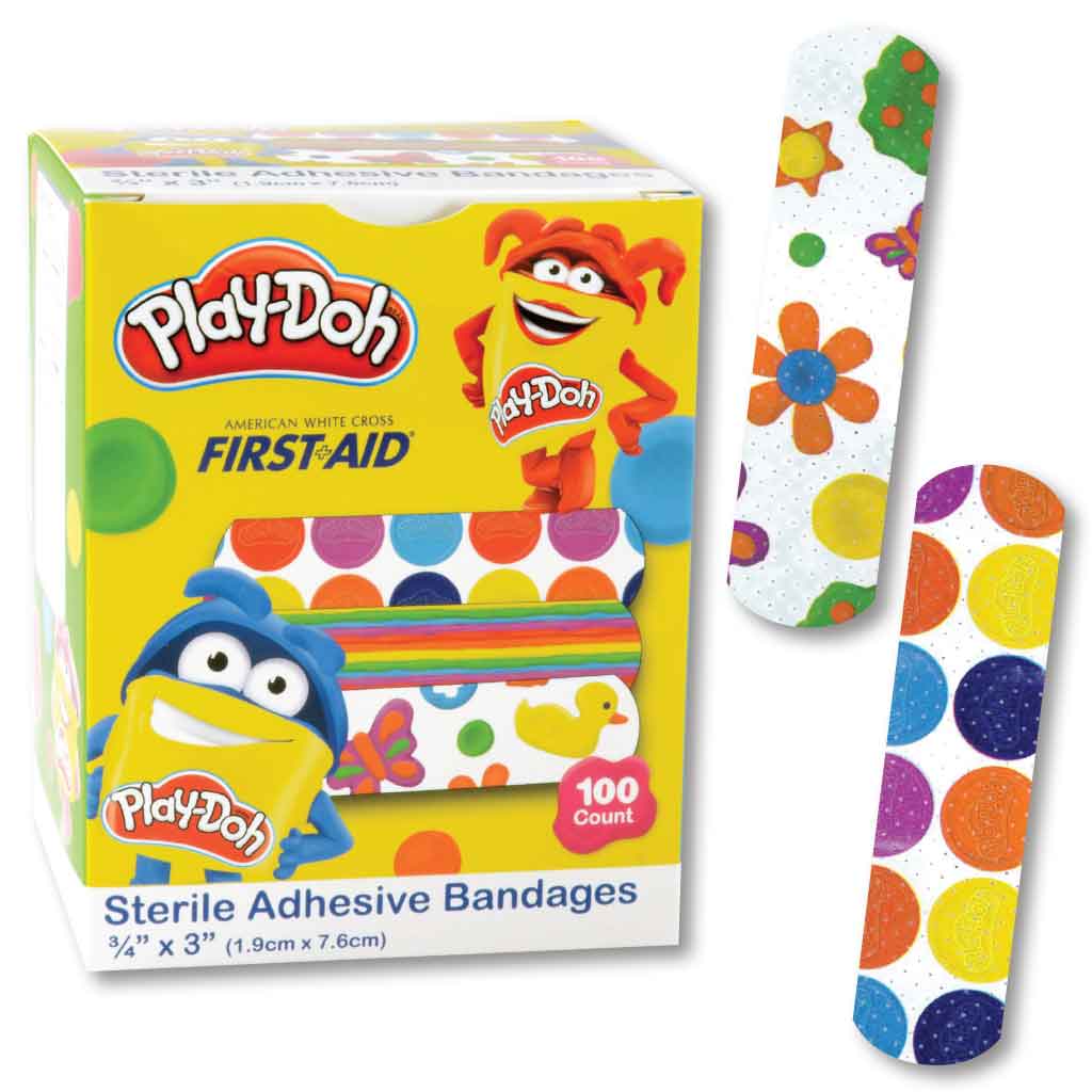 Turn tears into smiles with Play-Doh bandages! Bright, colorful designs distract kids from pain and ease their worries. Stock up on special bandages to help distract and comfort kids after owies, blood draws, shots or immunizations. Stat Strip® wrapper design makes it fast, easy and hygienic to open and apply the bandage strip to skin.