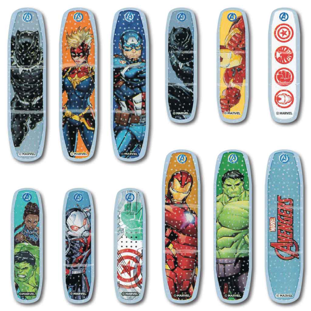 When kids wear a fun Avengers bandage they'll be part of the action ! These bold bandages help your little ones feel like heroes. With assorted sizes, taking care of little owies is easy. Fun bandages help to distract and comfort kids after blood draws, shots or immunizations.