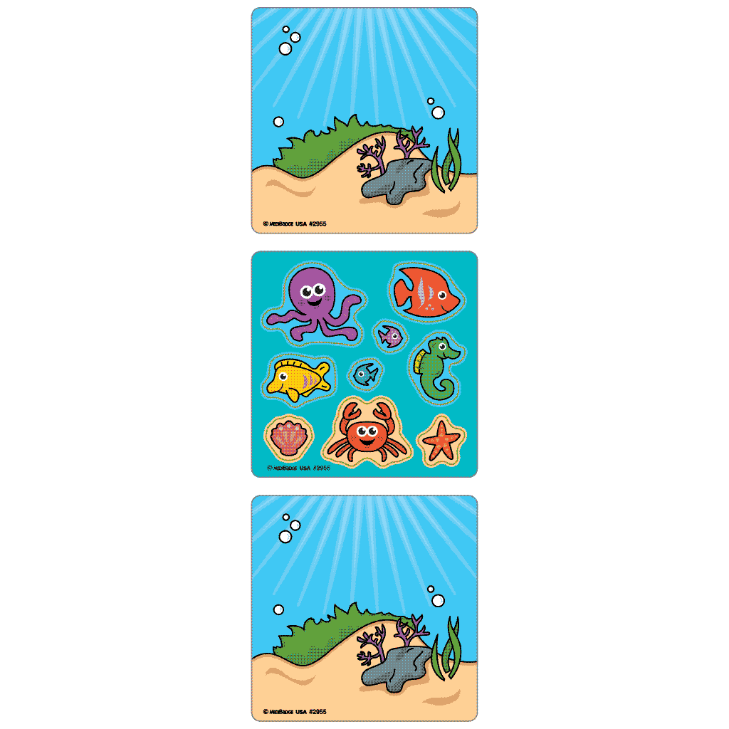 Make a splash with stickers that inspire creativity! Kids will love placing these sea creature friends on a cute ocean floor background.