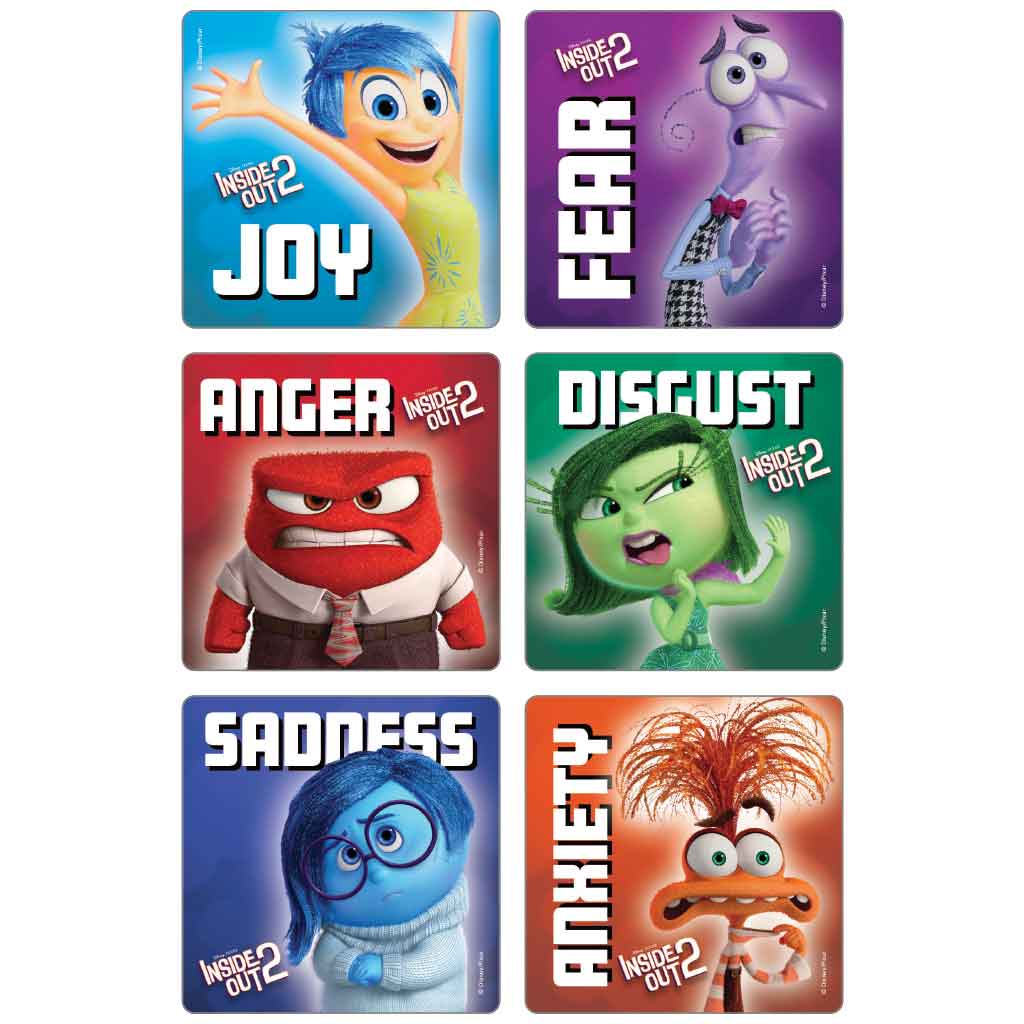 Help kids get out of their own head and into these great stickers! Kids have plenty to deal with on a daily basis. Talking about emotions can be intimidating. Stickers are a familiar, comfortable format for kids and can help them communicate feelings without even having to say a word. These Inside Out 2 stickers expertly illustrate the everyday emotions we all experience. Kids can have a little fun relating to each of the popular movie characters: Joy, Anger, Sadness, Fear, Disgust and Anxiety.