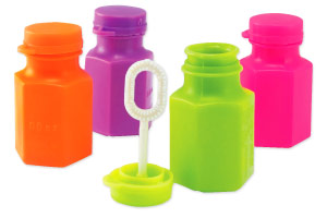 Nothing is more entertaining than the magic of bubbles! Bubble bottles come in bright, summertime assorted colors that will put a smile on kids’ faces. Wand included in each bottle.