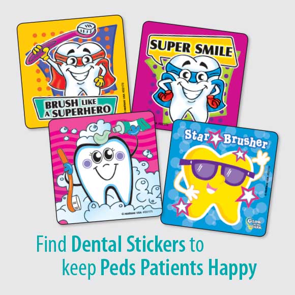 We Make Office Visits Fun for Kids!® Encourage good brushing habits and reward great check-ups with Dental Stickers! Kids Love Stickers powered by MediBadge offers the best value for kids stickers, tooth boxes, treasure chests, Smile Supplies bags, pencils, crayons and coloring activities for your Dental practice. KidsLoveStickers.com makes it easy to stock up on sugarless lollipops and character stickers that make smiles. Whether you want to reward children or remind parents of a fluoride treatment, end every appointment with a fun prize that will make patients show off their healthy smiles! We’ve Got a STICKER for That™
